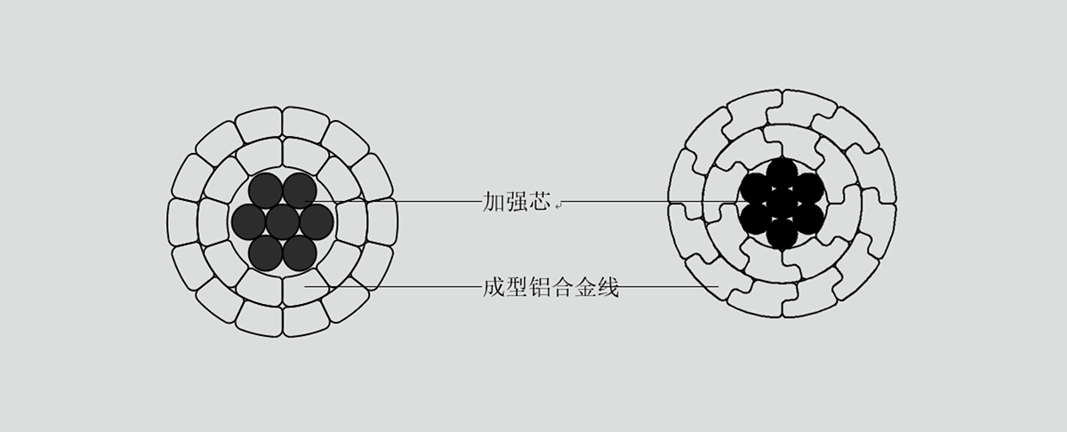 抗拉強度提高:絞線的鋁導體采用高強度鋁鎂硅合金型線,導電率≥53%IACS ,單線的抗拉強度不小于295MP ,使得導線的整體抗拉強度提高很多。